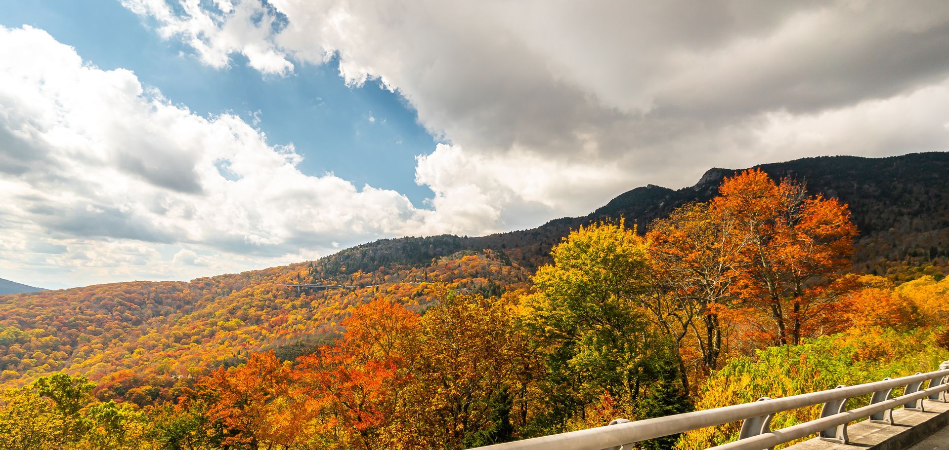 Every year we try to take a trip in the fall to see the changing colors. Sometimes it's just a short day trip within our state but often a more adventurous trip of a week or two. Several years ago we went to the Smoky Mountain National Park in the Blue Ridge Mountains near Gatlinburg, TN. It was such a great experience we decided to go again and add a couple of days traveling the Blue Ridge Parkway from Cherokee, NC to Roanoke, VA. While the driving can be slow 45 mph is peak with 30 mph more typical due to traffic; it's something I would recommend at least once in your lifetime. In this picure looking far in the distance one can see the Linn Cove Viaduct which cantilevers out over the mountainside for dramatic vistas. With the fall colors in peak display this captures the scenery that awaits a around every curve.