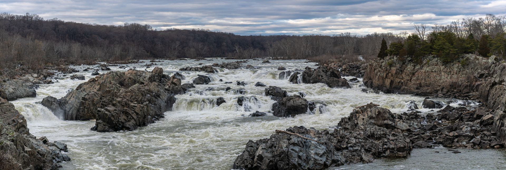 ButtonThe Potomac River narrows to a steep, jagged gorge that creates this dramatic scene in Great Falls National Park, Virginia