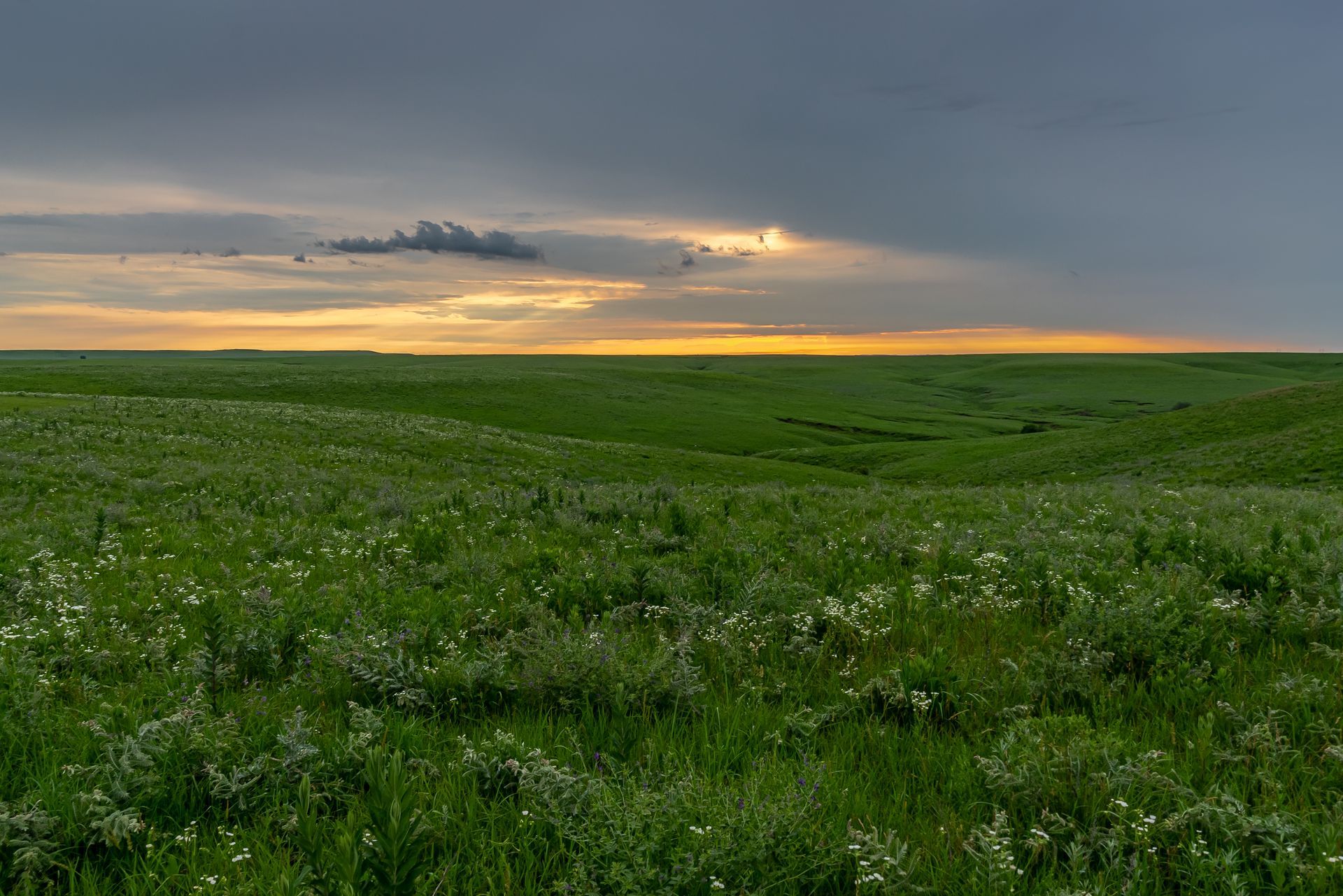 ButtonThe tallgrass prairie in the Flint HIlls of Kansas. As evening descends an allegro of clouds and stirring grasses plays a quiet symphony to your soul.