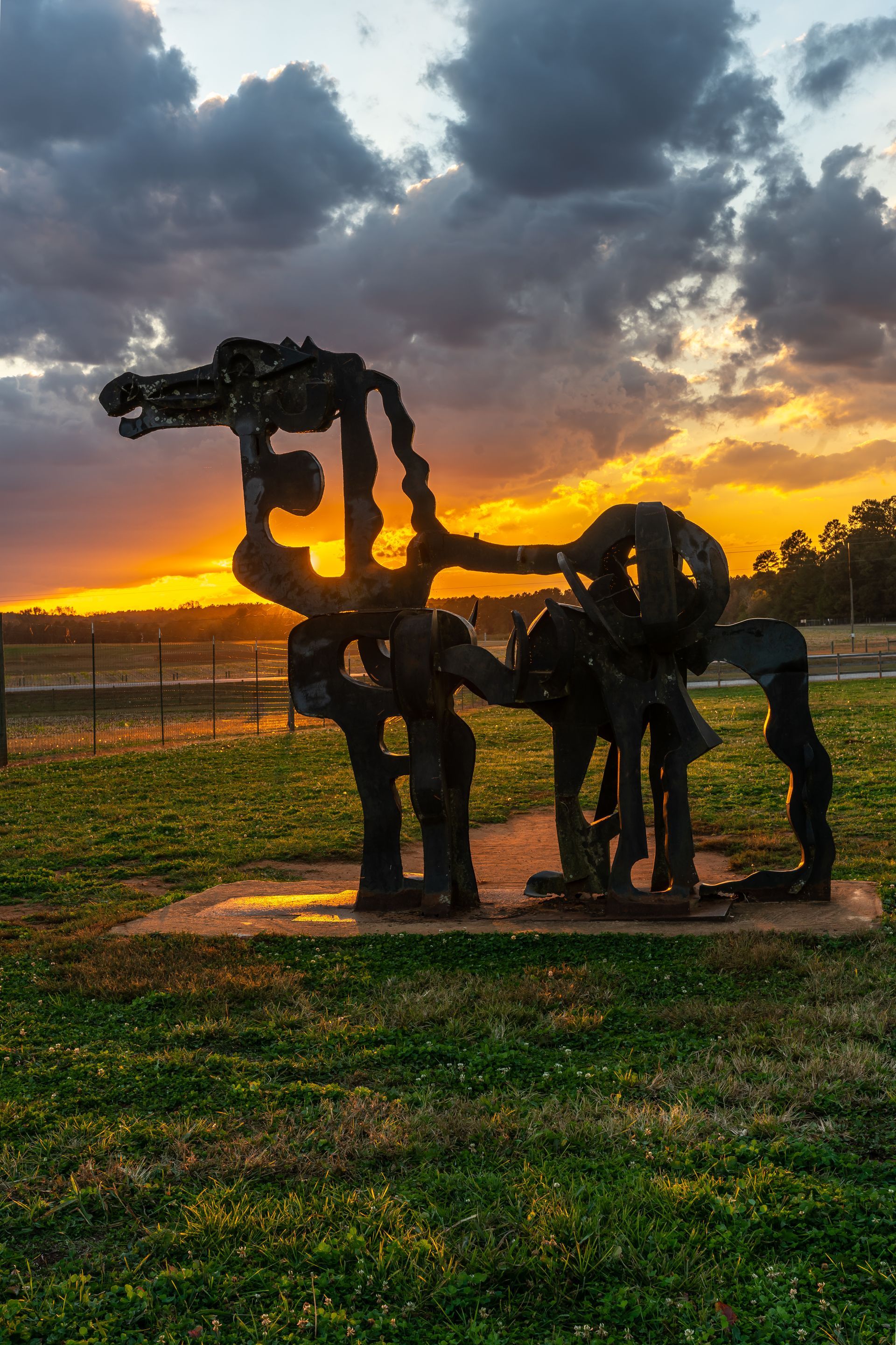 ButtonThe infamous iron horse of Georgia at sunset. Created in 1954 by a professor at the University of Georgia it was later banished to the country side to live a second life as a tourist attraction.
