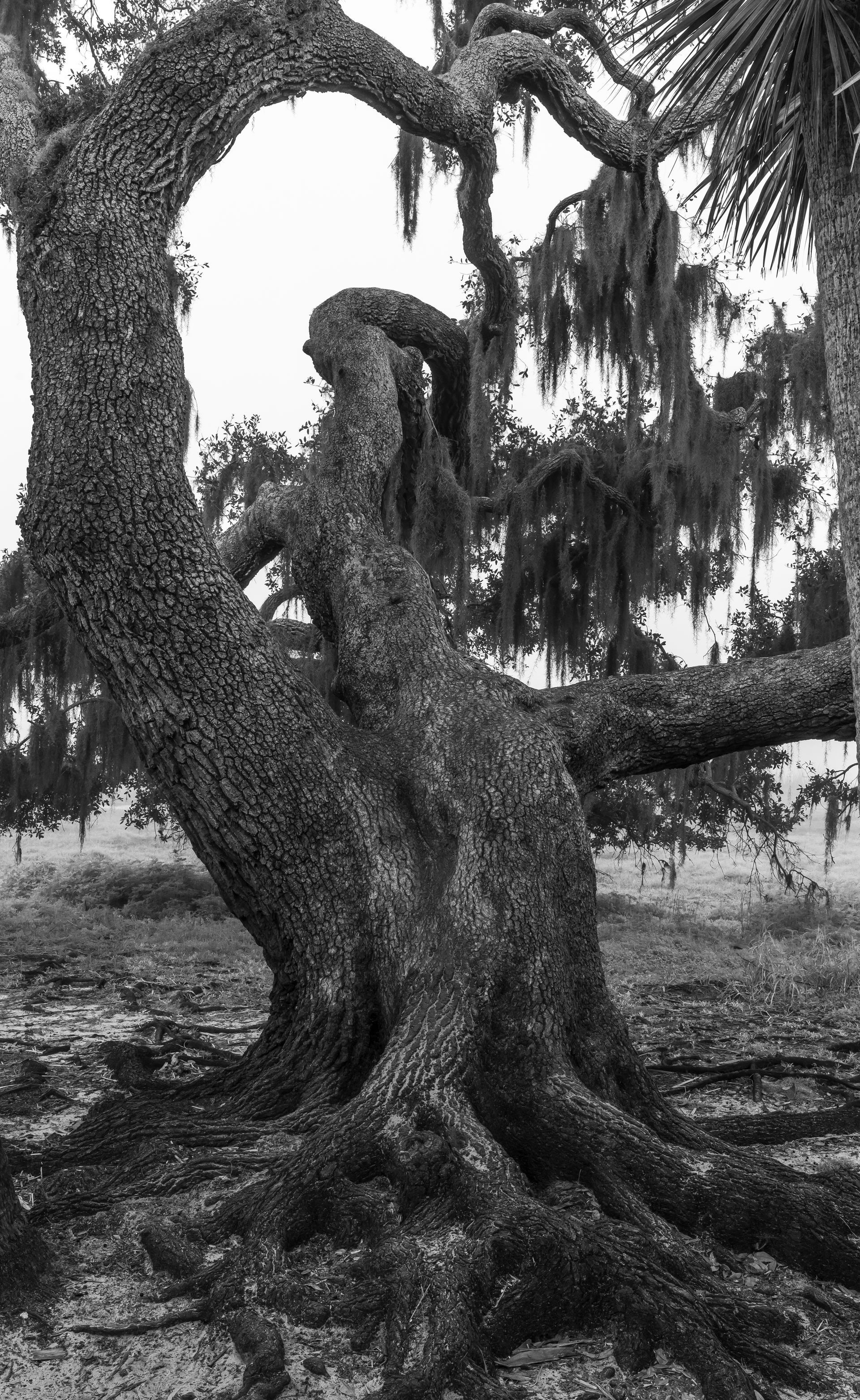 ButtonLive oak tree in Myakka State Park, Central Florida. This old oak has weather many a storm and history
