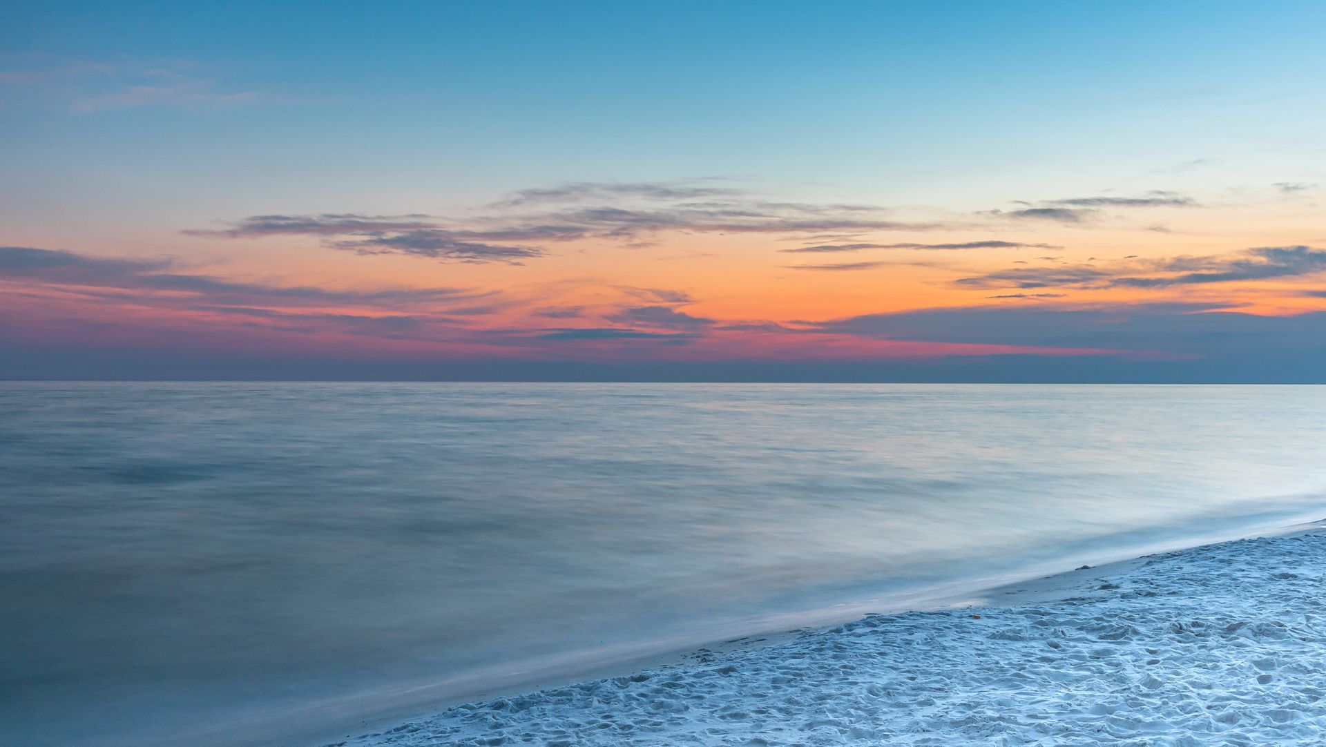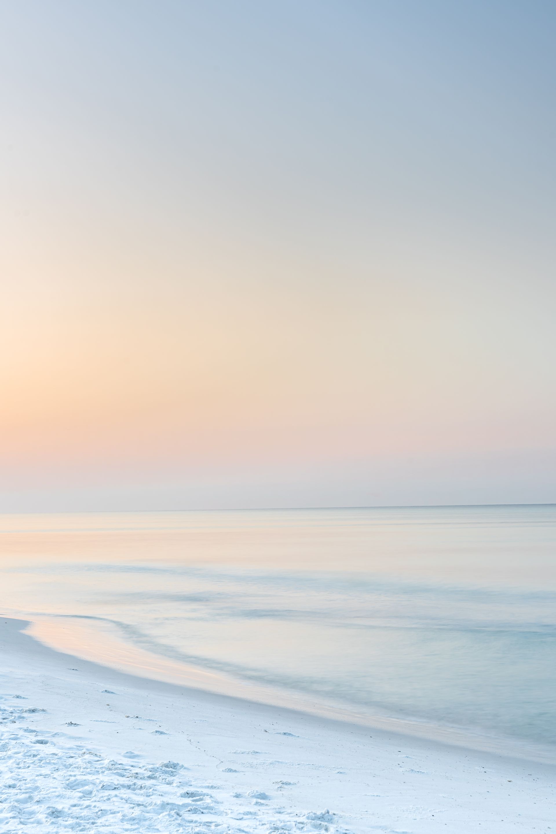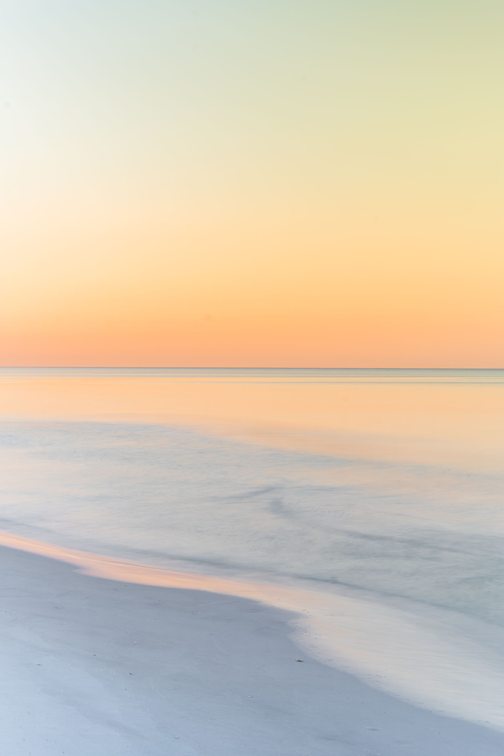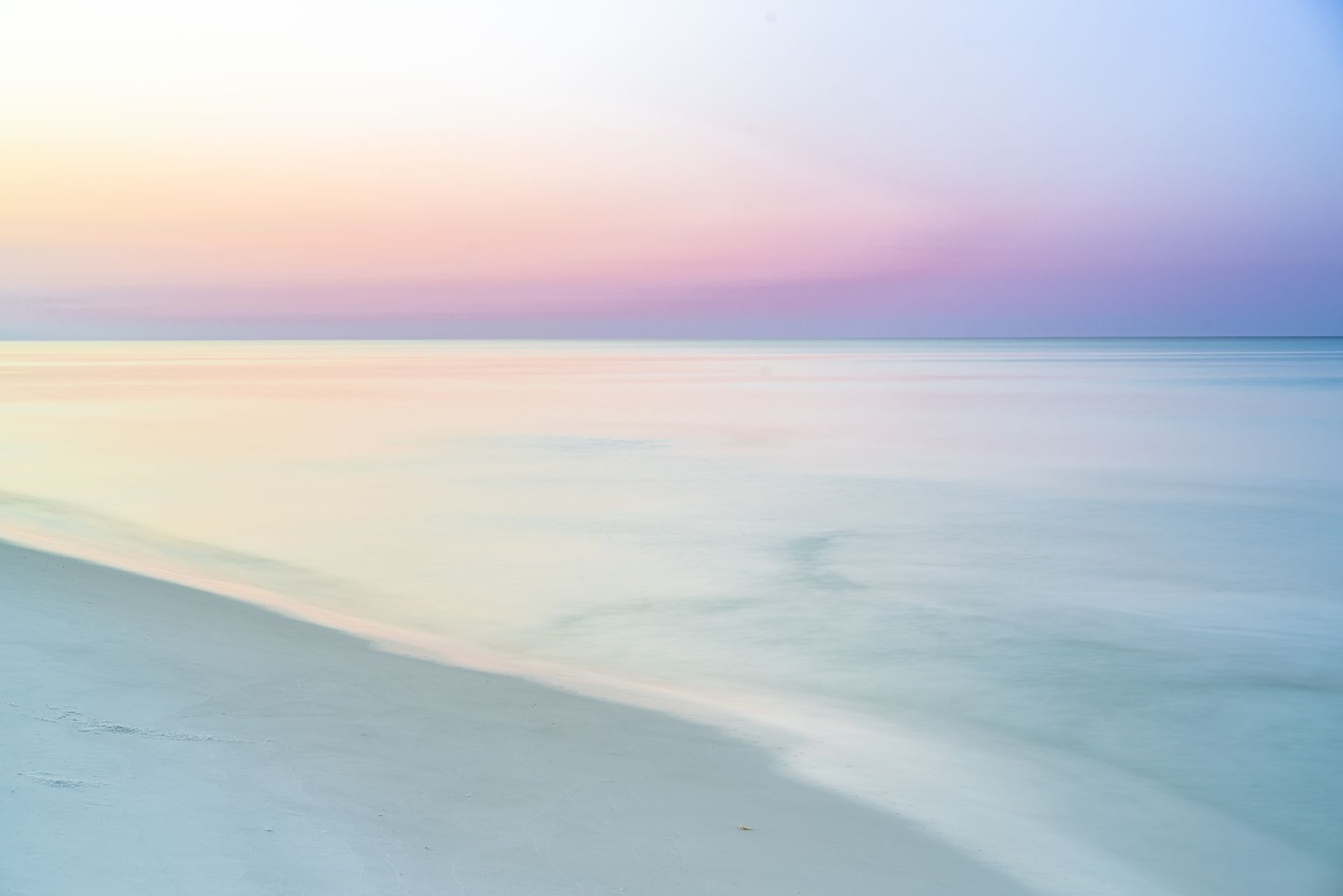 ButtonSky,Sea,Sand merge as one continuous blend of pastel colors in this ocean scene.